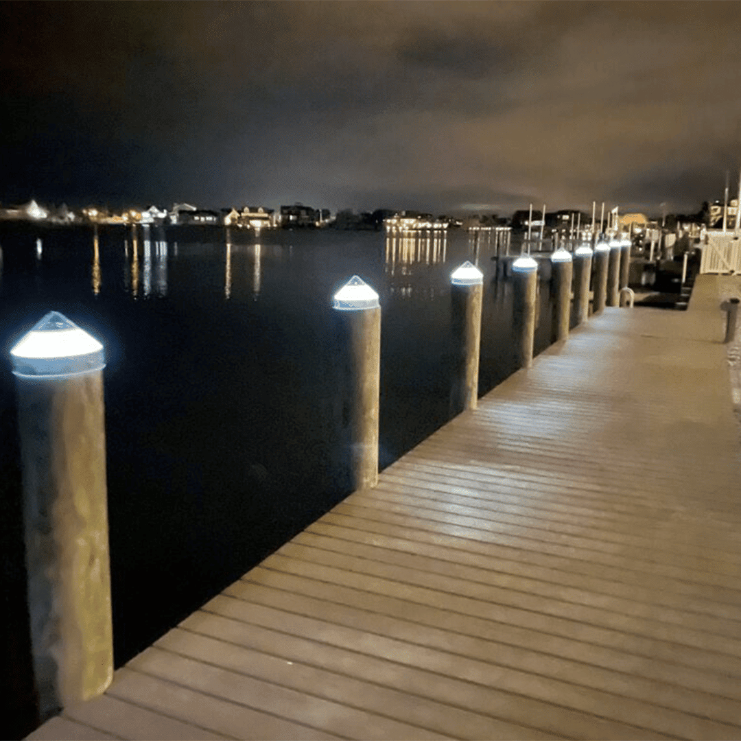 DokLites service the conventional purposes of piling cap, whether it be to guard against birds or rain. They use Mil-Spec micro-processor circuitry to create a comfortable, ambient light on your dock. Each has a UV and impact resistant housing. DokLites, and the LEDS within them, will last and be protected for years. To help your DokLite for many years.